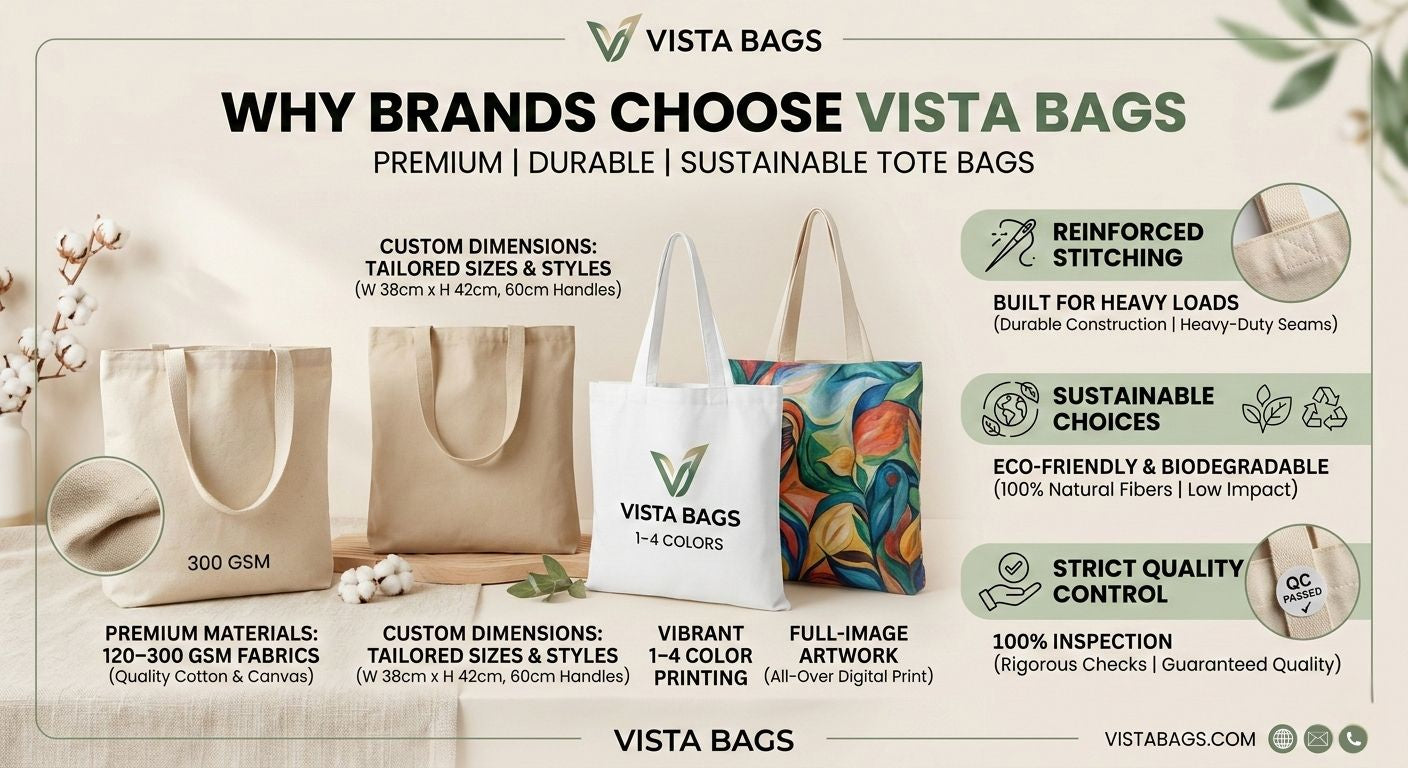 Yes. We manufacture bags based on your requirements. You can customize dimensions, fabric thickness (120–300 GSM), colors, handles, and printing style, including single-color, multi-color, or full artwork printing.